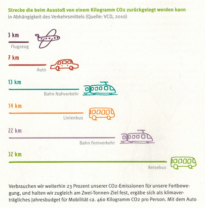 (aus: Zukunftsfähig mobil in Hamm; Ein Projekt vom Forum für Umwelt und gerechte Entwicklung; www.fuge-hamm.de / Klimaexperimente für deinen Alltag; Hg.: Jugend im bund für Umwelt- und Naturschutz Deutschland; www.aboutchange.de / Bundeszetrale für politische Bildung: Themenblätter im Unterricht Nr. 71, www.bpb.de/themenblaetter)