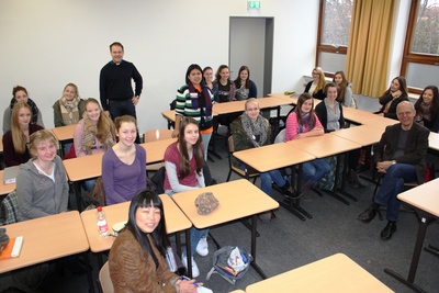 Schülerinnen der Q" mit dem Gast Frau Miraflor "Joy" Austria